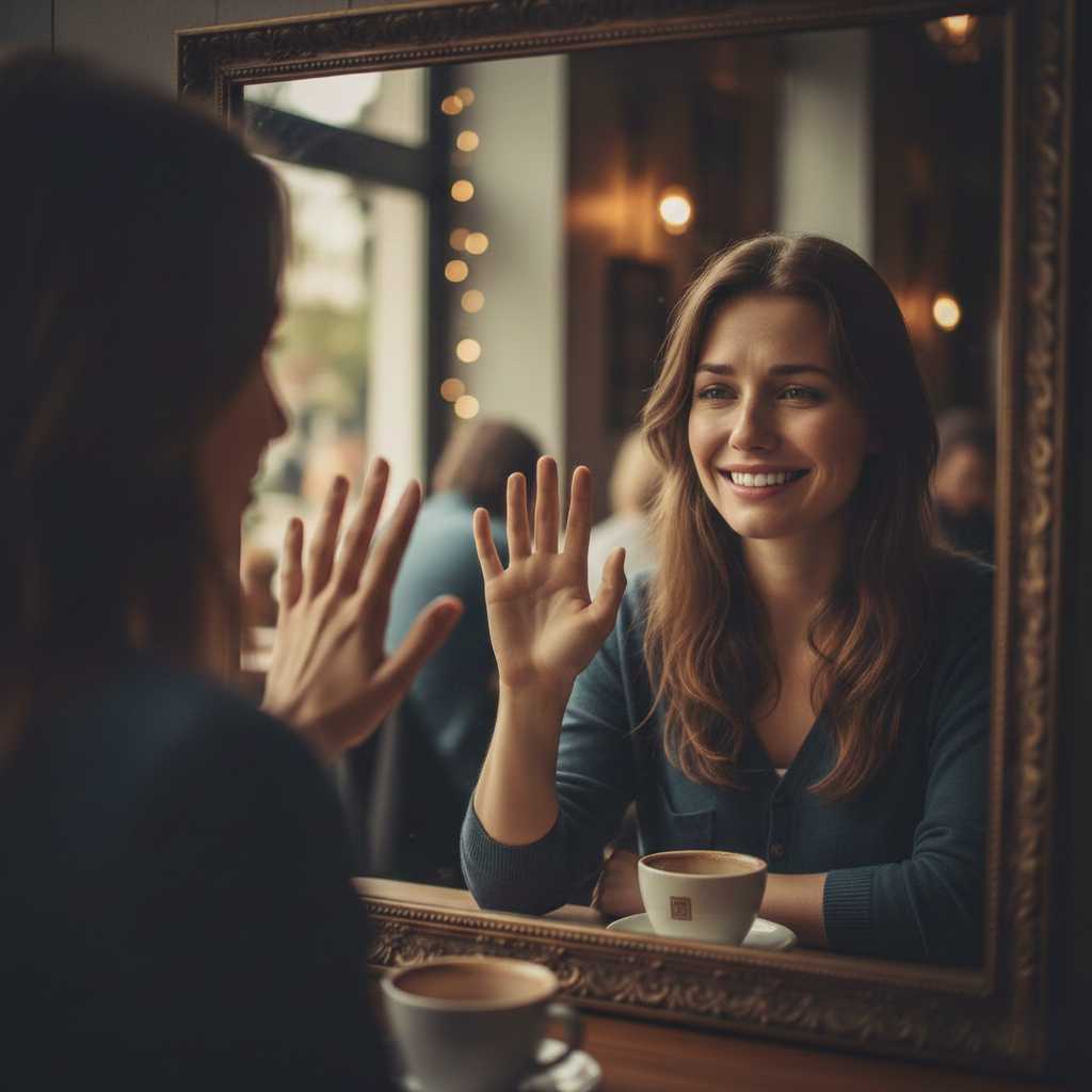 The first thing Emily noticed was not her reflection. It was how she stopped thinking about her smile.